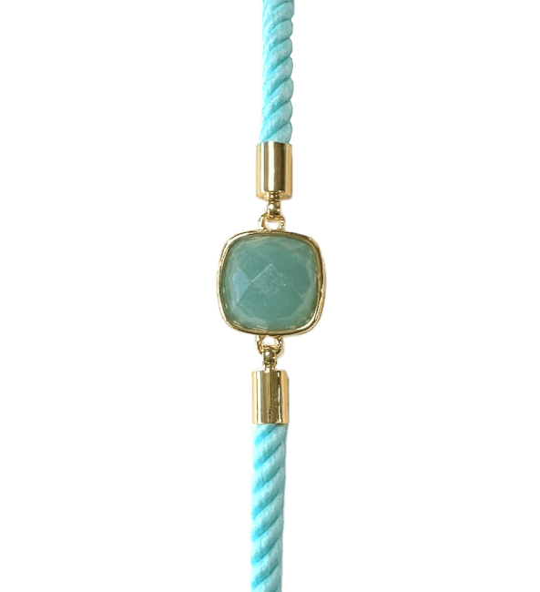 Bracelet Ajustable Corde Laiton Amazonite Carré Facetté 11mm