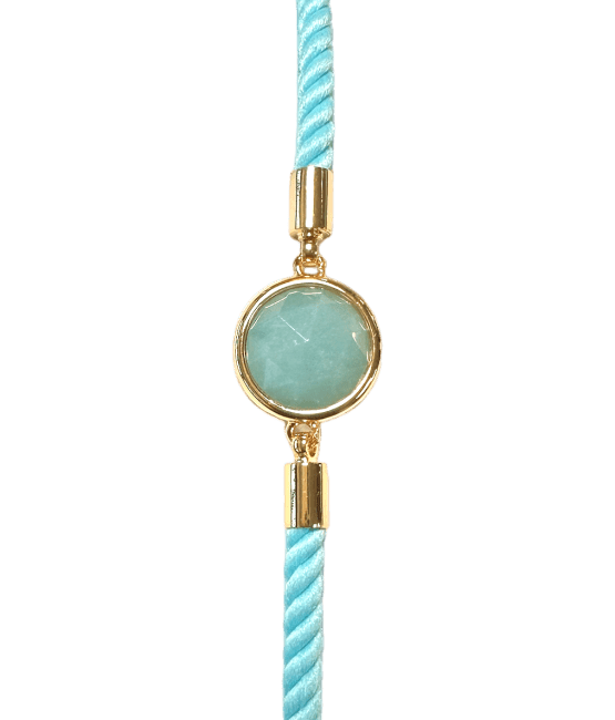 Bracelet Ajustable Corde Laiton Amazonite Rond Facetté 12mm