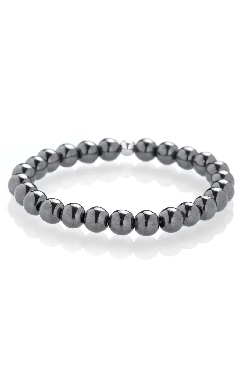 Hématite : portez de l'hématite si vous êtes au bout du rouleau, cette pierre vous aidera à rétablir la paix, l'harmonie, aide à reprendre goût à la vie. Débarrassé de vos peurs, elle vous redonnera de la volonté, de la force ainsi que de la confiance, vous évitera ainsi de succomber aux compulsions alimentaires ou autres (tabac, alcool). Très bonne pierre pour la concentration et la mémoire. Porter ce bracelet la nuit vous permettra d'avoir un sommeil réparateur.