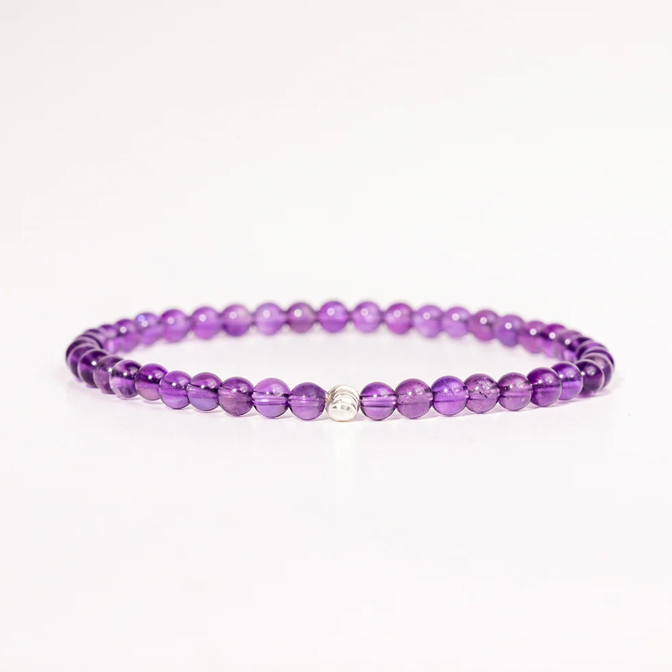 BRACELET ANTI-STRESS AMETHYSTE ET PERLE ACIER INOXYDABLE 4mm