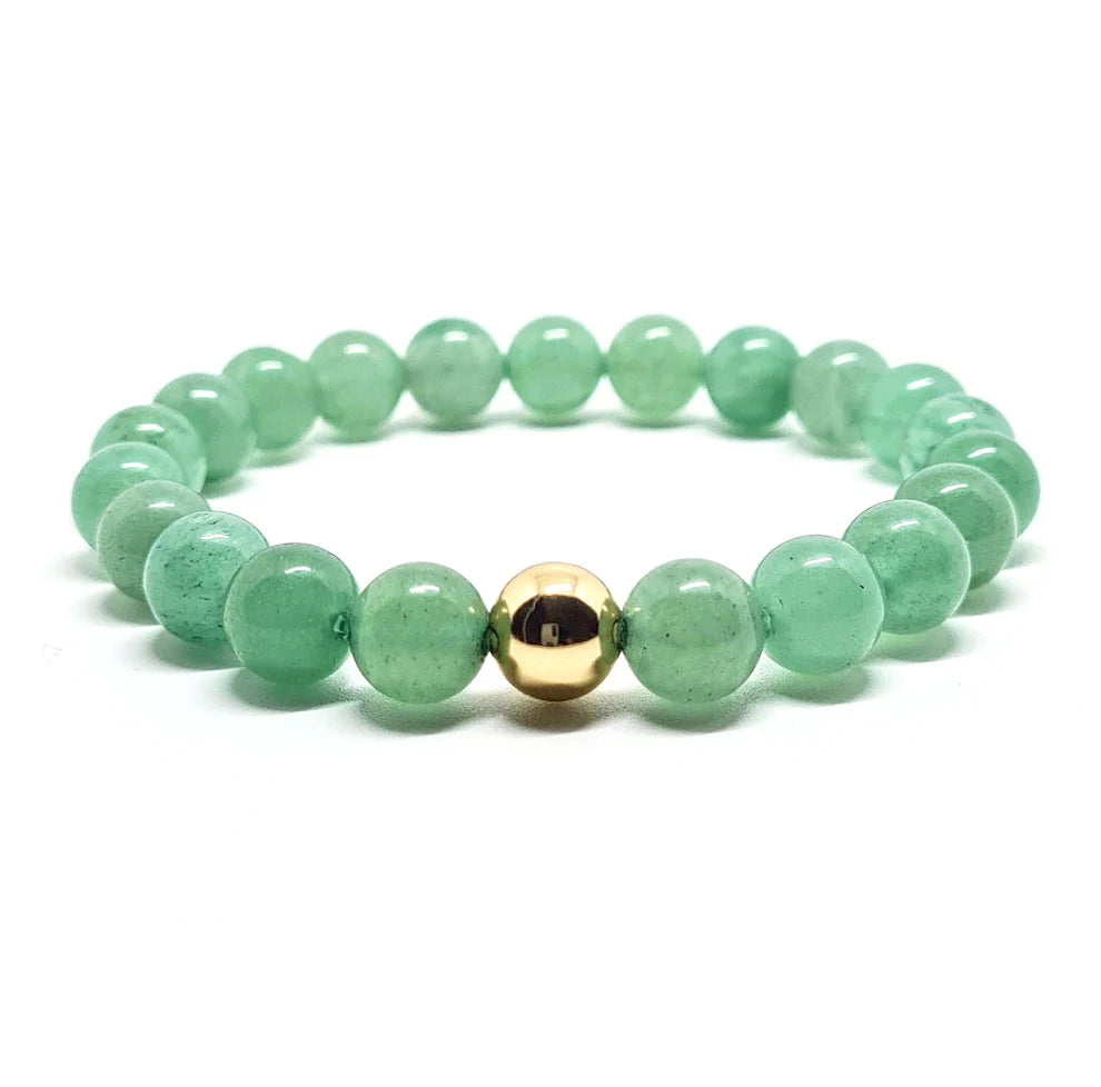 Aventurine verte : C'est la pierre idéale pour affermir vos qualités de meneur : avec son aide, vous serez plus persévérant, c'est la pierre de l'aventure et des heureux hasards, elle vous portera chance pour de nouveaux projets ainsi que pour vos finances. C'est le coup de pied aux fesses bienvenu pour réaliser tous ce que vous n'osez pas faire à cause d'une blessure d'humiliation. Elle ouvrira votre cœur, vous confortera dans le fait que vous méritez le bonheur. Elle élimine les tensions nerveuses et les angoisses. Elle peut être associée avec un second bracelet en Rhodonite.