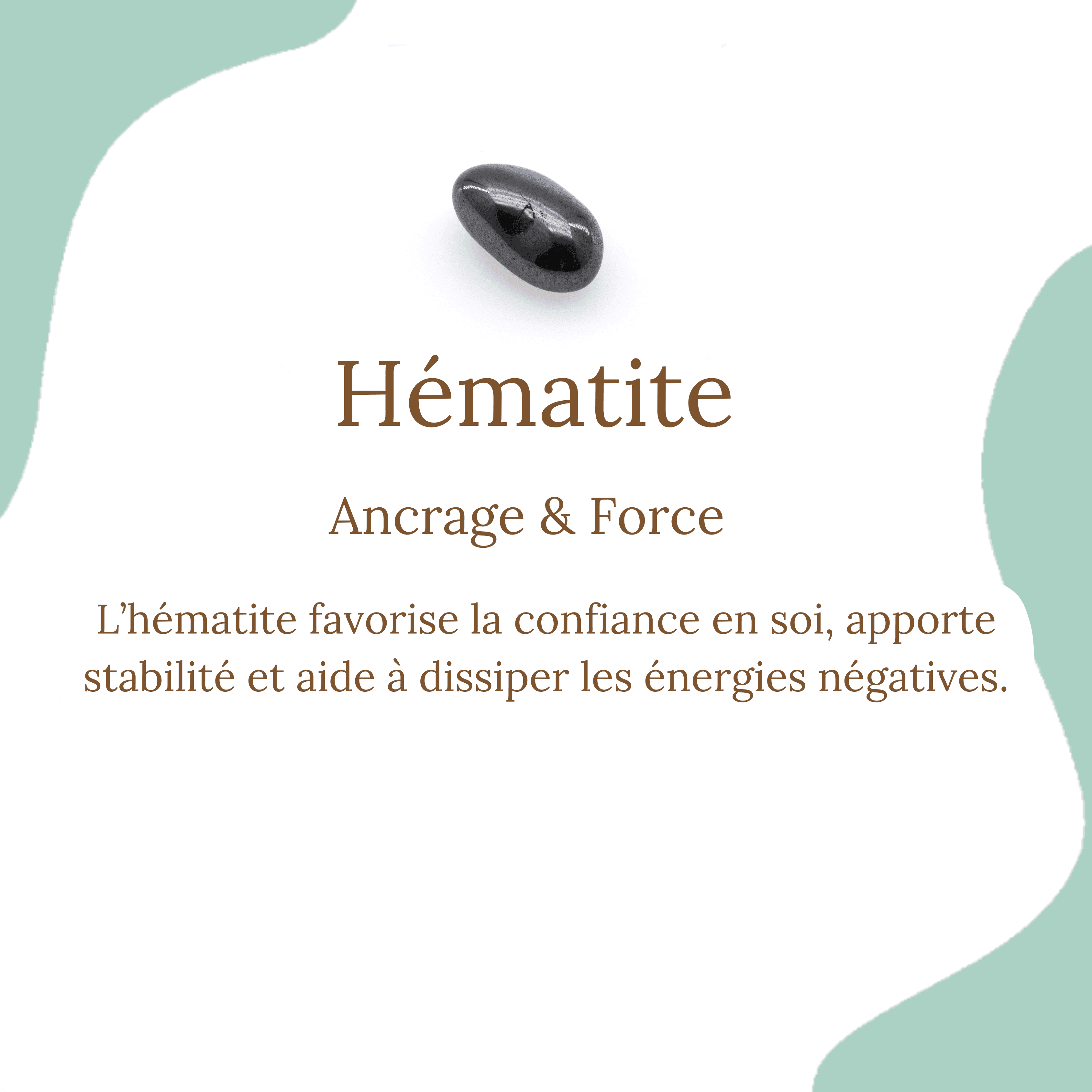 Hématite : portez de l'hématite si vous êtes au bout du rouleau, cette pierre vous aidera à rétablir la paix, l'harmonie, aide à reprendre goût à la vie. Débarrassé de vos peurs, elle vous redonnera de la volonté, de la force ainsi que de la confiance, vous évitera ainsi de succomber aux compulsions alimentaires ou autres (tabac, alcool). Très bonne pierre pour la concentration et la mémoire. Porter ce bracelet la nuit vous permettra d'avoir un sommeil réparateur.