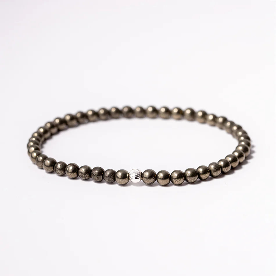 BRACELET ENERGIE ET REUSSITE PYRITE 4mm / Catégorie A / Pérou / Perle acier inoxydable