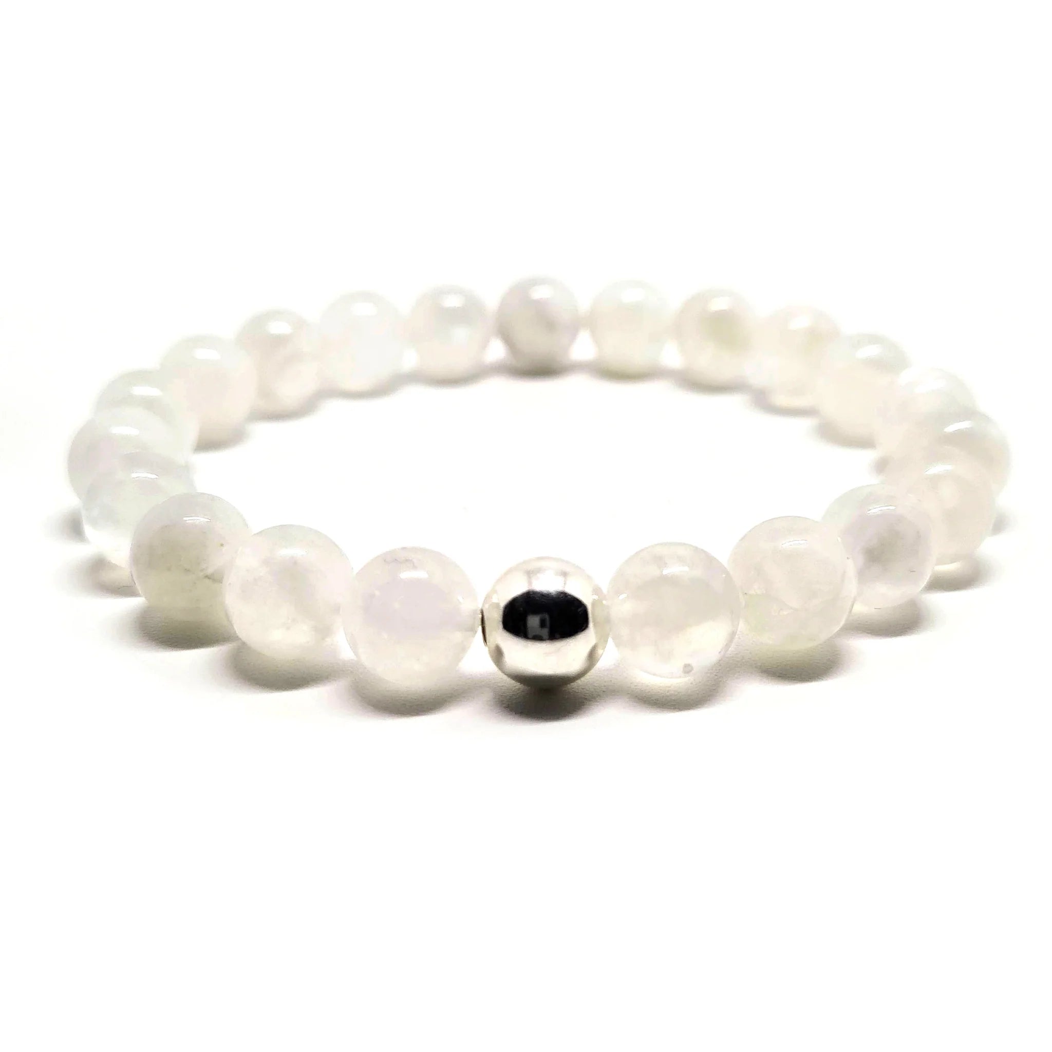 Description Pierres précieuses véritables : 8mm Perle en acier inoxydable, argent Bracelet extensible, réalisé sur mesure suivant votre poignet (voir... Lire la suite
